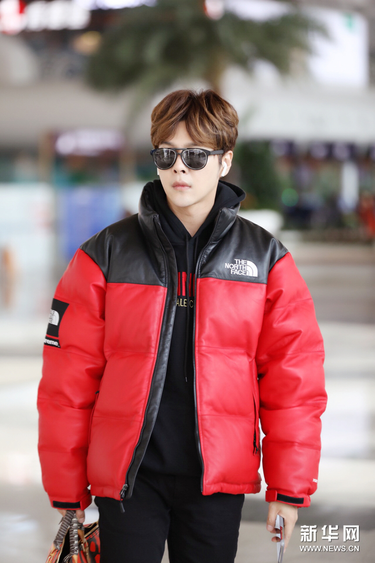 徐海喬機場秀大長腿 紅色羽絨服個性時髦