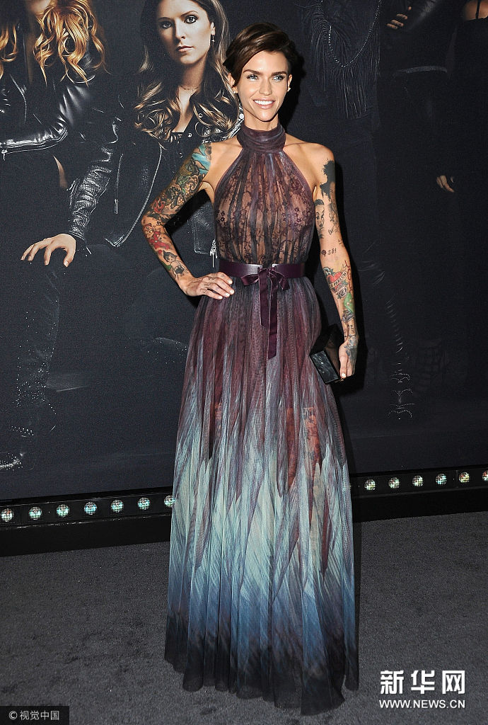 魯比·洛斯?jié)u變深紫色削肩長裙 盡顯熟女氣質(zhì)