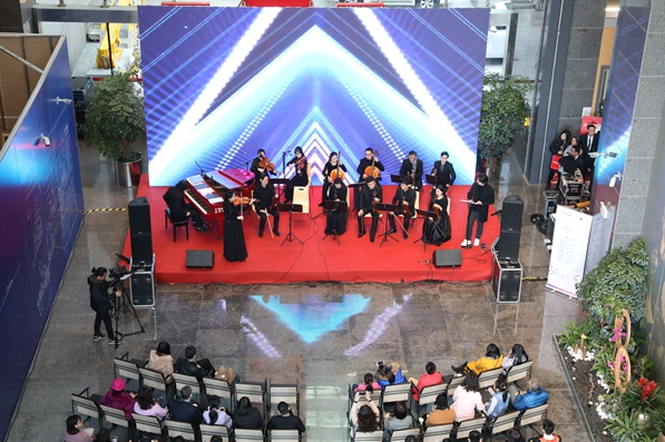 琴聲時而舒緩如流泉,時而激越如飛瀑,時而清脆如珠落玉盤,時而低回如呢喃細語……鋼琴與提琴交織,管樂和弦樂共舞,是的,你沒有聽錯,這是古典交響樂在午間響起,在福田CBD,在白領(lǐng)云集的辦公樓,在招商銀行深圳分行大廈的營業(yè)大廳里。2018年2月6日,招商銀行深圳分行大廈迎來了福田愛樂樂團午間音樂會新年的第三場演出,也是該樂團自2015年創(chuàng)辦午間音樂會以來的第84場演出。高雅的藝術(shù)氣息讓原本單調(diào)的午間趣味橫生,動人的場景、美妙的樂音,在這里一一定格。