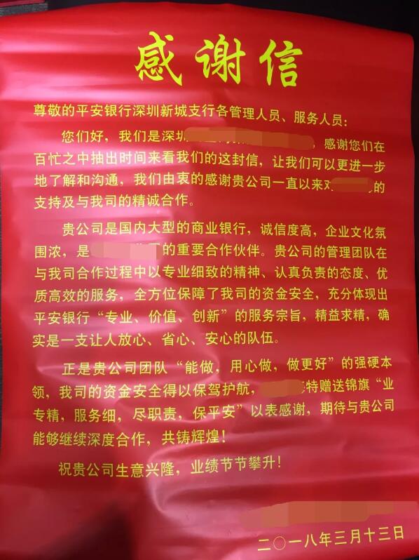 深圳新聞網(wǎng)訊 日前,平安銀行深圳分行分支行聯(lián)動想方設(shè)法勸阻客戶,成功堵截了一起詐騙,幫助客戶避免了500多萬元的資金損失,并協(xié)助警方抓獲了詐騙犯罪嫌疑人。此次成功堵截詐騙,得到了客戶和家屬的高度贊揚,專程送來了錦旗和感謝信,稱贊平安銀行“業(yè)專精、服務(wù)細(xì)、 盡職責(zé)、保平安”。
