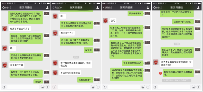 實際償還數(shù)與當(dāng)初協(xié)商數(shù)不符,何先生聯(lián)系到當(dāng)初為自己辦理貸款的捷信業(yè)務(wù)員,但是對方稱自己提醒過何先生有服務(wù)費(fèi),并要求何先生去捷信總公司調(diào)取錄音,但是當(dāng)何先生提出調(diào)取錄音時,對方卻將他微信拉黑了。