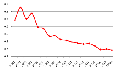 圖2我國(guó)蒙格斯社會(huì)公平指數(shù)