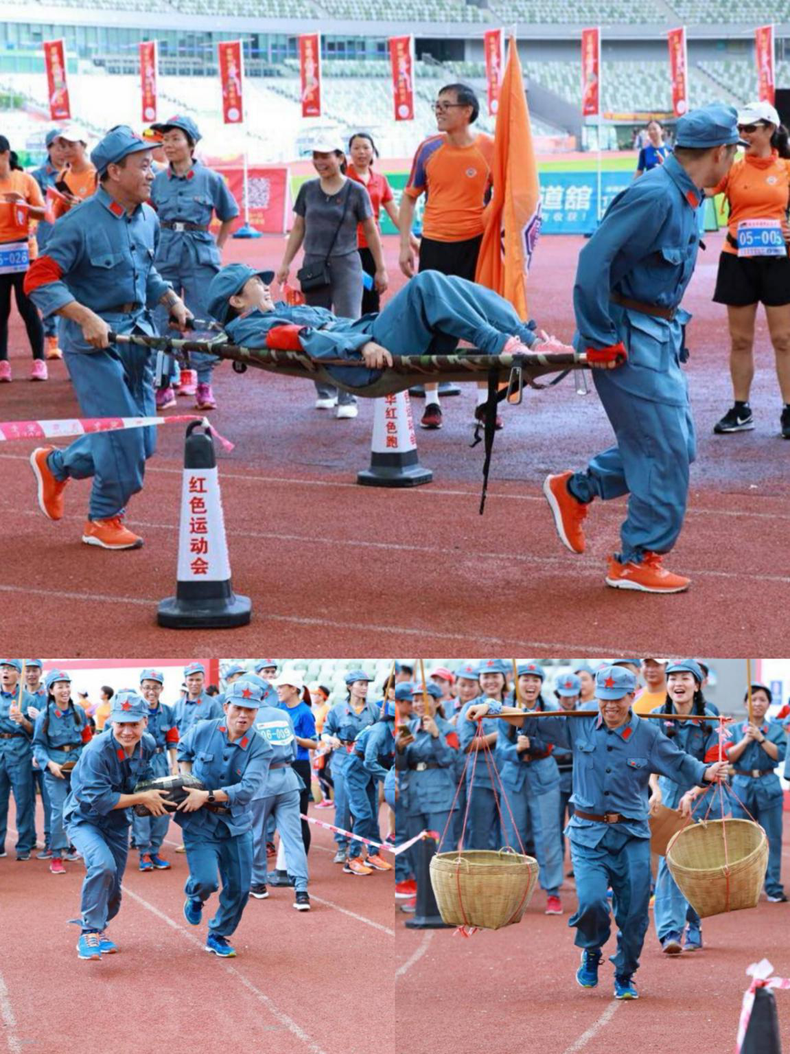 紅色運(yùn)動(dòng)會(huì)結(jié)合長(zhǎng)征路途上的艱苦環(huán)境與革命先輩的英勇事跡設(shè)計(jì)了7種不同類(lèi)型的團(tuán)隊(duì)比賽項(xiàng)目,如穿越烽火線、火線救傷員、朱總司令的扁擔(dān)南泥灣大豐收等。讓運(yùn)動(dòng)員們?cè)诒荣惖倪^(guò)程中,著革命前輩的戰(zhàn)衣,回到戰(zhàn)火紛飛的艱苦年代,一路奮勇拼搏征程,邁向新時(shí)代。