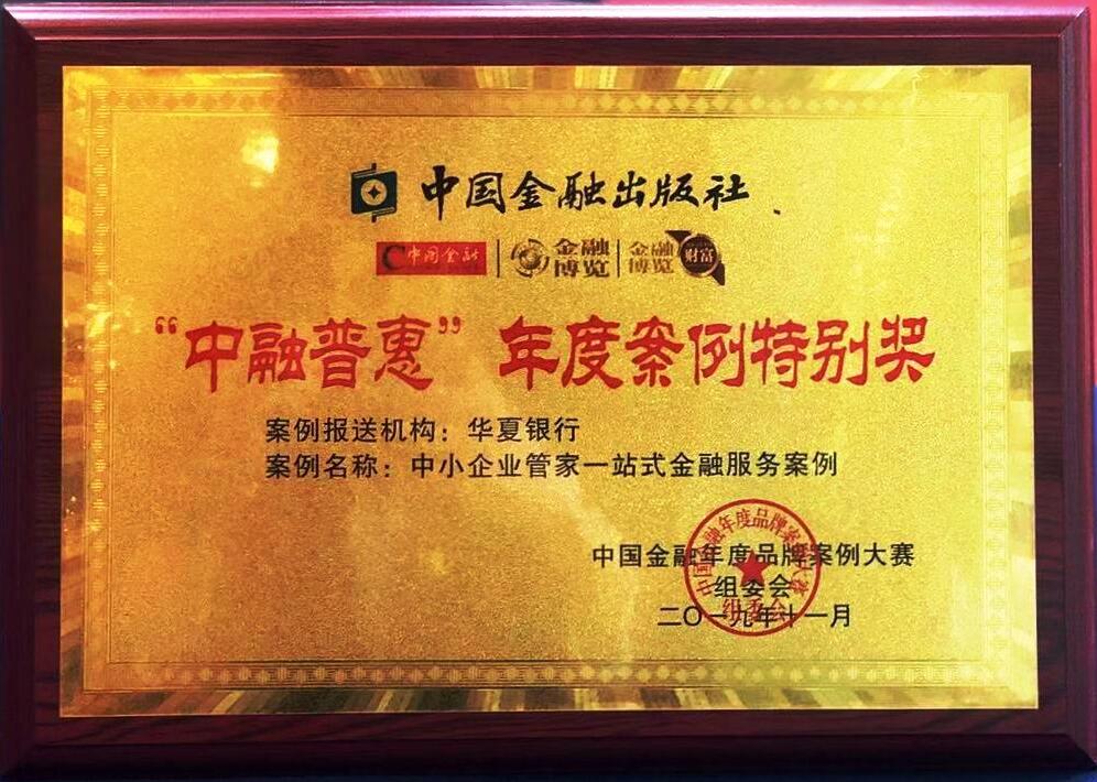 深圳新聞網(wǎng)12月11日訊 2019年11月,在“第二屆(2019)中國金融年度品牌案例大賽”上,華夏銀行獲得“中融普惠”年度案例特別獎(jiǎng)。