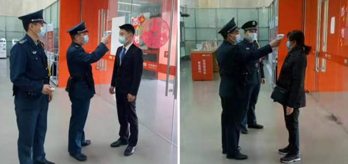 網(wǎng)點服務(wù)人員對進入營業(yè)網(wǎng)點的人員做好體溫測量,對于上門辦理業(yè)務(wù)的客戶,引導(dǎo)客戶佩戴口罩,鼓勵客戶使用自助機具或線上金融服務(wù),每日定時對填單臺、簽字筆等客戶頻繁接觸部位進行消毒,保障客戶身體健康。