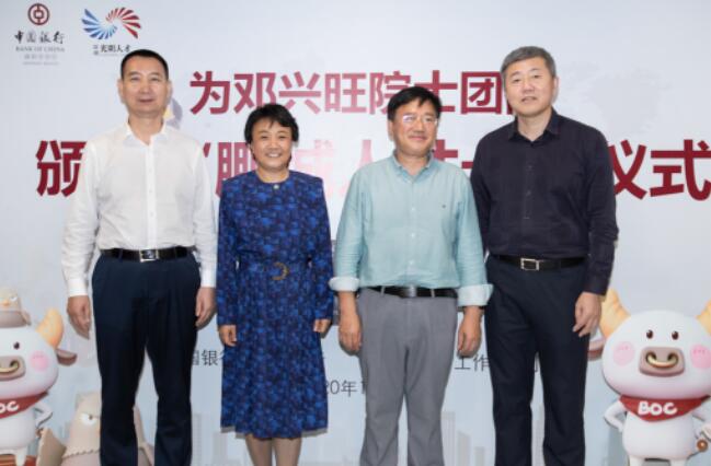 深圳新聞網(wǎng)·見圳客戶端2020年11月8日訊 昨日,深圳市光明區(qū)委常委、組織部部長(zhǎng)繩萬(wàn)青,中國(guó)銀行深圳市分行副行長(zhǎng)韓竹代表深圳市光明區(qū)人才辦和中國(guó)銀行深圳市分行,為生物學(xué)家、美國(guó)國(guó)家科學(xué)院院士鄧興旺及部分團(tuán)隊(duì)成員頒發(fā)了“中銀鵬城人才卡”鉆石卡,這是全市范圍內(nèi)首張向在深院士發(fā)放的“中銀鵬城人才卡”,標(biāo)志著這張由光明區(qū)人才辦和深圳中行共同策劃推出的人才卡實(shí)現(xiàn)了市級(jí)認(rèn)定的各層級(jí)人才全覆蓋。鄧興旺院士是深圳市杰出人才獲得者、深圳市作物分子設(shè)計(jì)育種研究院院長(zhǎng)、深圳興旺生物種業(yè)有限公司董事長(zhǎng),他帶領(lǐng)團(tuán)隊(duì)2010年到深圳創(chuàng)業(yè),多年來(lái)在水稻領(lǐng)域取得兩項(xiàng)重大技術(shù)突破,其中“潔田模式”大規(guī)模市場(chǎng)示范面積達(dá)到50萬(wàn)畝,有效加快了中國(guó)農(nóng)業(yè)的輕簡(jiǎn)化、現(xiàn)代化步伐。
