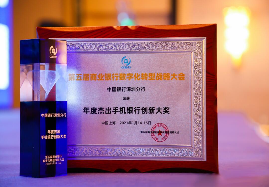 中國(guó)銀行深圳市分行榮獲“年度杰出手機(jī)銀行創(chuàng)新大獎(jiǎng)”等兩項(xiàng)大獎(jiǎng)