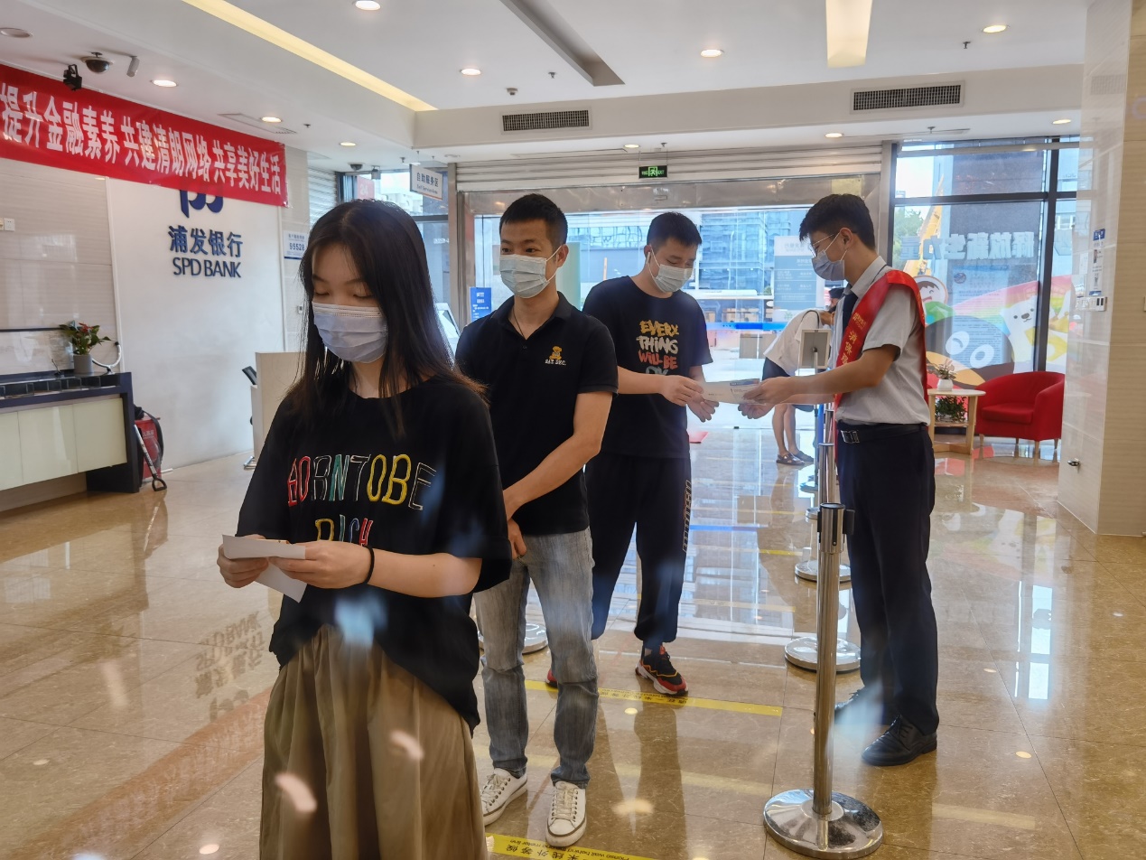 近期,全國疫情防控形勢依然嚴峻,浦發(fā)銀行深圳科苑按照上級要求,做好防疫相關(guān)工作,在每一位市民進入網(wǎng)點之前,均安排專人負責(zé)測量體溫,引導(dǎo)客戶出示行程碼和健康碼并要求戴好口罩。為提醒市民防疫,該網(wǎng)點還提供了免洗洗手液、一次性口罩等防疫物品。在紀念幣兌換排隊等候區(qū),該網(wǎng)點設(shè)立專屬通道,張貼一米等候線,引導(dǎo)市民有序完成兌換,避免人群扎堆?,F(xiàn)場秩序井然,多位市民表示在節(jié)假日期間拿到紀念幣非常滿意。