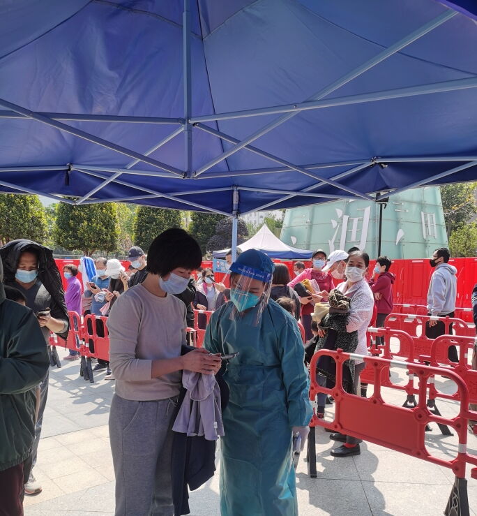 2022年2月24日,陳暢身處的福保街道益田村被劃定為“管控區(qū)”,益田社區(qū)近四萬居民將每天開展全員核酸檢測。2月25日,益田社區(qū)黨群服務(wù)中心發(fā)出招募疫情防控志愿者的通知,陳暢同志第一時間亮明自己的黨員身份,加入臨時黨員先鋒隊。上午9點(diǎn)至下午3點(diǎn),在益田村中心廣場核酸檢測點(diǎn)參加志愿者服務(wù),6個小時時間為近2000居民提供核酸檢測掃碼服務(wù)。陳暢同志在居家隔離期間,并沒有安于休息,而是積極發(fā)揮黨員先鋒模范作用,以志愿者的身份服務(wù)在疫情防控一線。