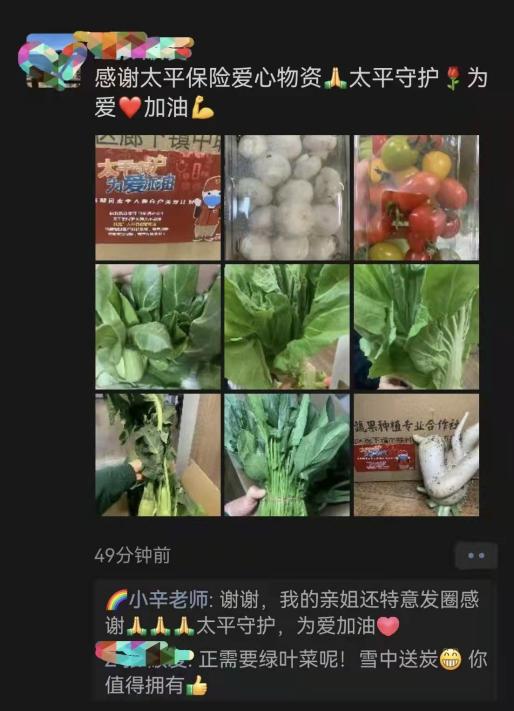 為積極應對疫情,太平人壽上海分公司迅速反應,推出“太平守滬為愛加油”客戶關(guān)愛計劃。公司與滬上知名果蔬種植基地合作,將新鮮采摘的蔬果,由持有48小時內(nèi)核酸陰性證明的太平保險代理人,為客戶朋友直線送達。