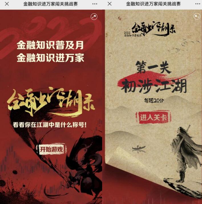 據(jù)悉,太平人壽在2022年金融知識普及月期間,多管齊下、先試先行、大膽創(chuàng)新,多元化、多層次地推動金融消費者教育和金融知識的普及。其中,“金融江湖錄”將游戲與金融知識科普合二為一,幫助老百姓全面客觀地認識保險,提高金融風(fēng)險防范意識。