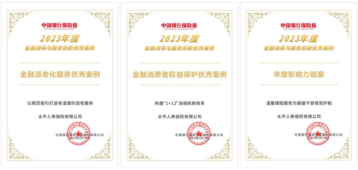 保護金融消費者權益是金融業(yè)落實“以人民為中心”思想的重要體現(xiàn)。作為金融央企成員公司,太平人壽秉持中國太平集團“央企情懷、客戶至上、創(chuàng)新引領、價值導向”的戰(zhàn)略要求,為滿足人民群眾日益增長的美好生活需求貢獻太平力量。此次太平人壽多項服務案例入選“2023年度服務創(chuàng)新案例”,凸顯行業(yè)、專家對太平人壽高質(zhì)量保險服務的認可。