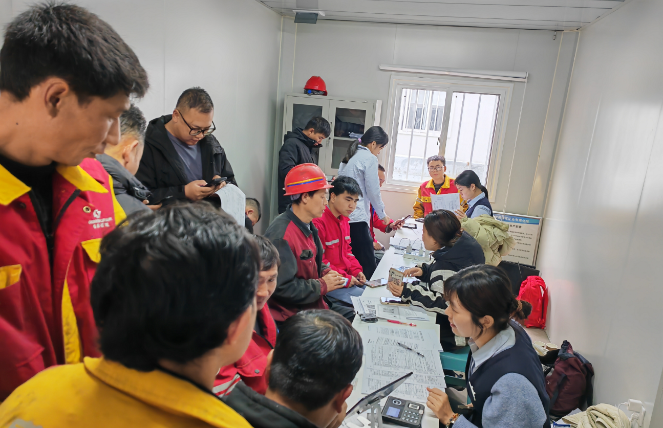 面對困難,陳嘉濤深知客戶需求無小事。他果斷決定帶隊前往現(xiàn)場,為當(dāng)?shù)貑T工集中辦理銀行卡開卡及工資代發(fā)相關(guān)手續(xù)。從繁華的深圳到偏遠(yuǎn)的高原,路途遙遠(yuǎn)、舟車勞頓,加上高原反應(yīng)帶來的身體不適,讓整個團(tuán)隊面臨嚴(yán)峻考驗。但他們沒有絲毫退縮,抵達(dá)后便迅速搭建臨時服務(wù)點,投入到緊張的工作中。