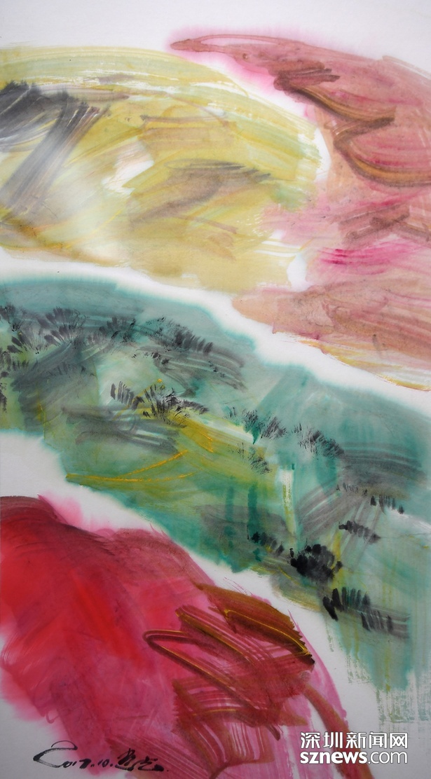 深圳大學(xué)藝術(shù)與設(shè)計(jì)學(xué)院副院長鄒明這樣評(píng)價(jià)紀(jì)光吉:如果說繪畫重在情感表達(dá)的話,在紀(jì)光吉的作品里讓人著實(shí)感受了一種隨心所欲的暢快。他幾乎沒有傳統(tǒng)觀念的束縛,行云流水信筆為之,花非花,山非山,墨色交融,隨意為之,意象、心意,只是表現(xiàn)心中對(duì)物象的一種感知,畫的樂趣也就自然而然其中了。品味其中,視覺上的快感有種自由自在的輕松,尤其是他畫里的花卉,沒有清晰的花朵,只是綻放的色彩和姿意的線條相互交織在一起,璀璨、斑瀾,洋溢著一種浪漫氣息。