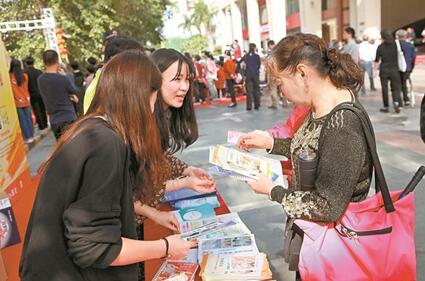 工作人員向居民宣傳創(chuàng)建文明衛(wèi)生城市等知識(shí)。深圳晚報(bào)記者 劉丹青 攝