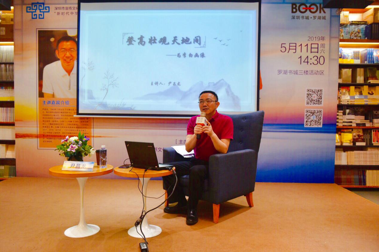 5月11日下午,“新時代中華優(yōu)秀傳統(tǒng)文化進社區(qū)”項目首場講座之“登高壯觀天地間——為李白畫像”在羅湖書城三樓開展。本次活動由深圳市壹書文化傳播有限責任公司、深圳書城羅湖城主辦,特邀深圳出版發(fā)行集團黨委書記、總經理尹昌龍博士擔任主講嘉賓,解讀多面詩仙李白,為聽眾奉上一場難得的文學盛宴。講座還未開始,現場已座無虛席,過道上站滿了李白迷,聽眾們早早就來靜候著了。