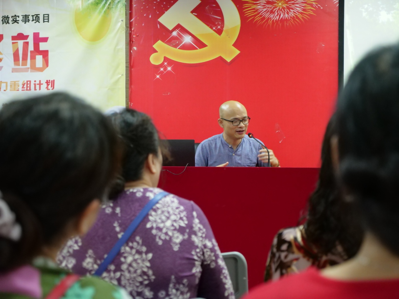 講座開始前,社區(qū)工作人員為現(xiàn)場聽眾每人分發(fā)學(xué)習(xí)資料 《深圳市民公約》小手冊和《漢字與修身智慧》,“文明城市稱號是一個(gè)城市含金量最高的榮譽(yù),深圳已經(jīng)連續(xù)獲得五屆文明城市的稱號,目前在爭創(chuàng)第六屆全國文明城市,文明城市事關(guān)你我他,需要我們每個(gè)人的參與和努力?!眲⒔ū肜蠋熼_場就說,“我們需要什么樣的家園?文明城市從哪里開始?”“我們需要和諧、溫暖、清潔、美麗的家園,創(chuàng)建文明城市從自身做起。”,臺下聽眾熱烈地討論回應(yīng)。劉老師接著說,文明城市從一撇一捺(人)開始,文明城市創(chuàng)建離不開人,每個(gè)人都成為文明市民,咱們這座城市必定能夠獲得文明城市的稱號。而做文明市民的第一步是轉(zhuǎn)變思想,努力提升我們的文明素養(yǎng),漢字作為中華文明的基因,深刻認(rèn)識了解漢字背后的文化傳承,對于我們美德建設(shè)、文明建設(shè)有重要的幫助作用,只有了解并認(rèn)同文明的重要性,才會自覺地踐行文明禮儀,積極參與文明城市創(chuàng)建。
