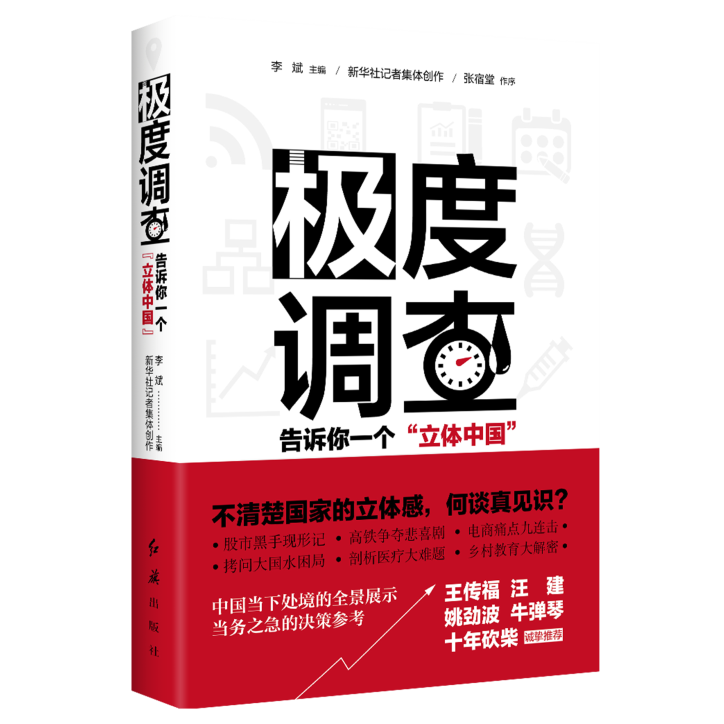 “他山之石,可以攻玉。”黨員干部除了直接調(diào)研,還要善于間接調(diào)查,研讀科研機(jī)構(gòu)和媒體的調(diào)研報(bào)告,通過專業(yè)人士的視角,了解國(guó)情。 《極度調(diào)查:告訴你一個(gè)“立體中國(guó)”》,就是一本記錄時(shí)代變遷的調(diào)研力作。新華社北京分社副社長(zhǎng)、總編輯李斌者歷時(shí)三年,深入中國(guó)各地實(shí)施一系列重大調(diào)研,直擊民生痛點(diǎn)與焦點(diǎn),全方位呈現(xiàn)了復(fù)雜多樣的中國(guó)社會(huì)現(xiàn)實(shí)。20余萬字的《極度調(diào)查》,來自繁華都市,來自風(fēng)云行業(yè),更來自深山峽谷、偏遠(yuǎn)山村,股市、高鐵、電商、生態(tài)、教育、貧困、健康等諸多方面均有涉及,傳達(dá)出了最一線、富有思想沖擊力的聲音。讀此書,全方位、多維度了解中國(guó)國(guó)情。
