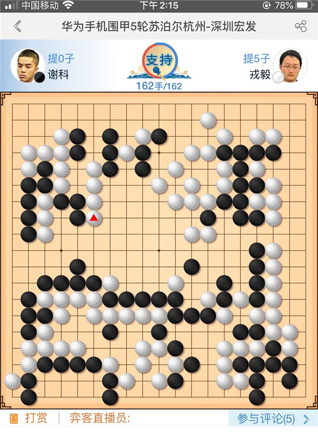 見圳客戶端?深圳新聞網(wǎng)2020年8月29日訊(記者周錦春)休戰(zhàn)一天的2020“華為手機(jī)杯”中國圍棋甲級聯(lián)賽,今天重燃戰(zhàn)火,第五輪繼續(xù)在浙江長興進(jìn)行。深圳宏發(fā)隊(duì)對陣衛(wèi)冕冠軍蘇泊爾杭州隊(duì),結(jié)果以3比1大勝。目前積12分,暫居積分積分榜第二位。本輪亮點(diǎn):深圳宏發(fā)隊(duì)三連勝!快棋五連勝!戎毅五連勝!