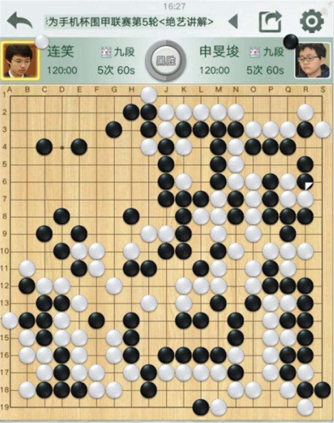 第二臺,主將時(shí)越執(zhí)黑對陣韓國第一人申真谞。黑棋左下角利用棄子獲得優(yōu)勢,左上一帶黑棋下的太緩局面接近。之后雙方錯進(jìn)錯出。最后黑右上選擇轉(zhuǎn)換判斷失誤,導(dǎo)致最后半目惜敗。