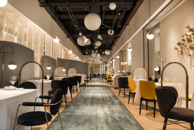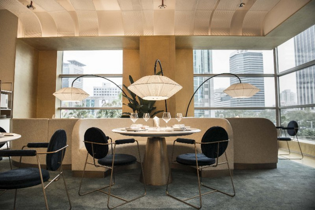 以黑色和金色為主色調(diào)的梧桐PLUS,選用流動(dòng)的線條對餐廳空間進(jìn)行分割。桌與桌之間的距離保證了食客對話的私密性和安全性。即使沒有預(yù)定到包廂,也不用擔(dān)心旁邊食客的閑聊會(huì)影響到彼此。