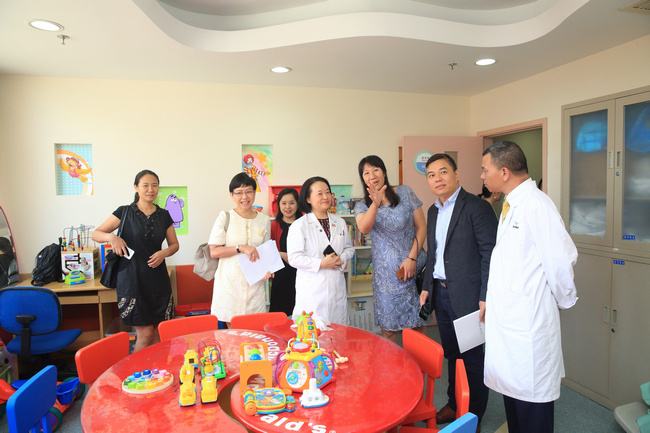 活動嘉賓參觀設在上海兒童醫(yī)學中心內(nèi)病區(qū)內(nèi)的麥當勞叔叔愛心活動室