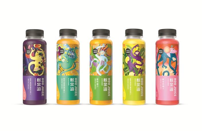 “猴果滋”取自廣東話“好果汁”的諧音,同時(shí)又以百果園的吉祥物“猴子”為靈感?!白獭贝泶丝罟牢?、健康的屬性。