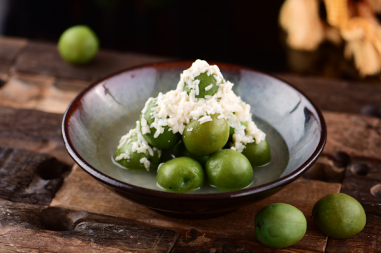 青梅,酸脆透甜,生津止渴,開胃健脾;酒釀,醇醇米香,帶著酒的芳香,益氣活血。搭配起來(lái)冰鎮(zhèn),炎炎夏日,吃上幾口,自是五腑清涼。