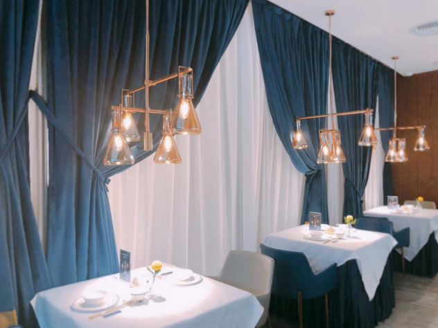 密室的大門,區(qū)隔開(kāi)的完全是兩種不同的風(fēng)格。實(shí)驗(yàn)室風(fēng)格VS LOFT風(fēng),密室玩的是神秘的科學(xué)實(shí)驗(yàn)室氛圍,大堂則是完全敞亮通透的空間,整體以大叔紳士藍(lán)、玫瑰金為主色調(diào),線條利落的天花板吊頂,吊燈暖暖的光線投射在擺放講究的餐具上,浪漫又小資,再搭配大理石紋水泥地磚、木紋墻藝等,讓整個(gè)空間保持和諧統(tǒng)一的氛圍,又展現(xiàn)出豐富的層次感。廚房直接采用明檔的空間設(shè)計(jì),衛(wèi)生情況一目了然,除了大堂,還設(shè)有特色VIP室和半透明宴會(huì)廳,適合有重要會(huì)談和生日宴會(huì)需求的朋友。