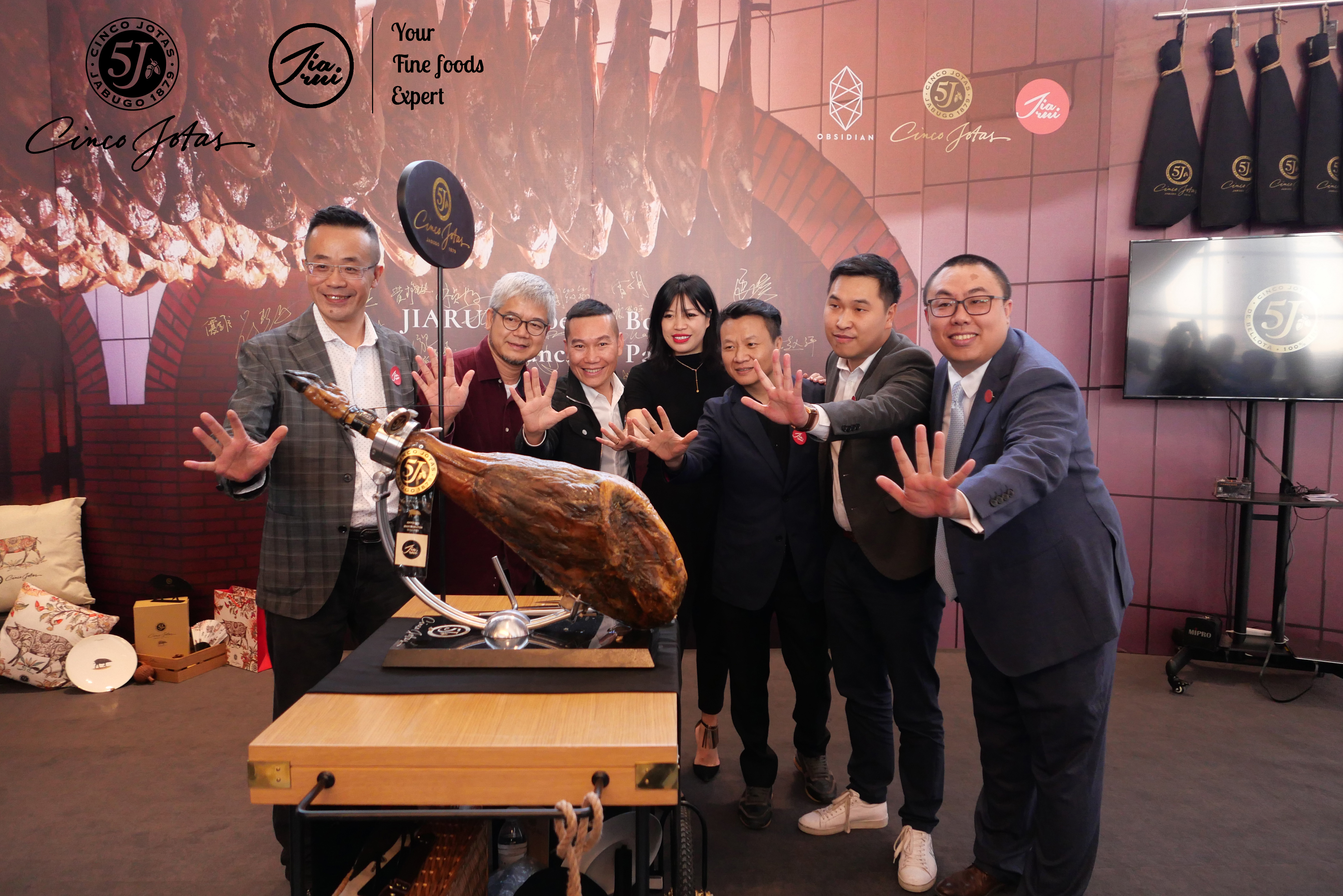 2019年11月28日,西班牙黑標(biāo)級別火腿5J與深圳佳銳食品有限公司,在深圳平安金融中心六樓舉行了南中國首發(fā)開幕儀式。