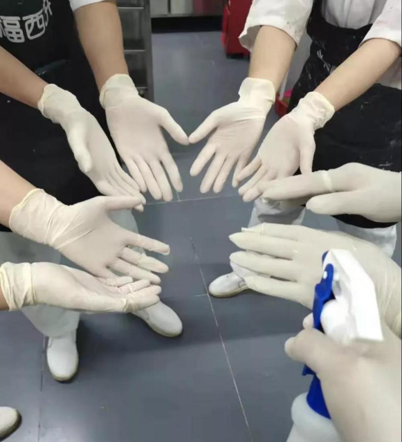 全面升級消毒工作。采購的新鮮水果,需經(jīng)過專門的水果清洗劑進(jìn)行清洗;操作臺的生產(chǎn)工具都會定時定期使用75%的醫(yī)用酒精消毒;此外,幸福西餅還為在崗配送員發(fā)放75%酒精,增加配送員的手部、保溫箱、配送車輛和蛋糕外包裝盒的消毒頻次;員工居住的宿舍,也進(jìn)行了全方位的消毒升級。