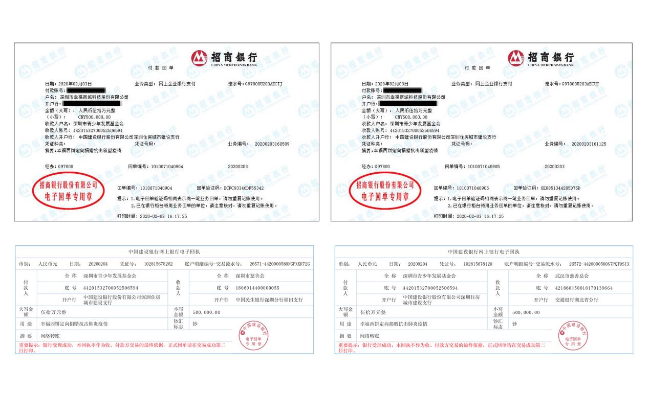 自疫情爆發(fā)以來,愛心企業(yè)紛紛向湖北疫情嚴(yán)重地區(qū)開展援助行動。2月3日,深圳市幸福商城股份有限公司宣布,通過深圳市青少年發(fā)展基金會向武漢市慈善會、深圳市慈善會共捐贈100萬元人民幣,用于疫區(qū)前線防治工作,并保障一線防疫醫(yī)護(hù)人員的安全。