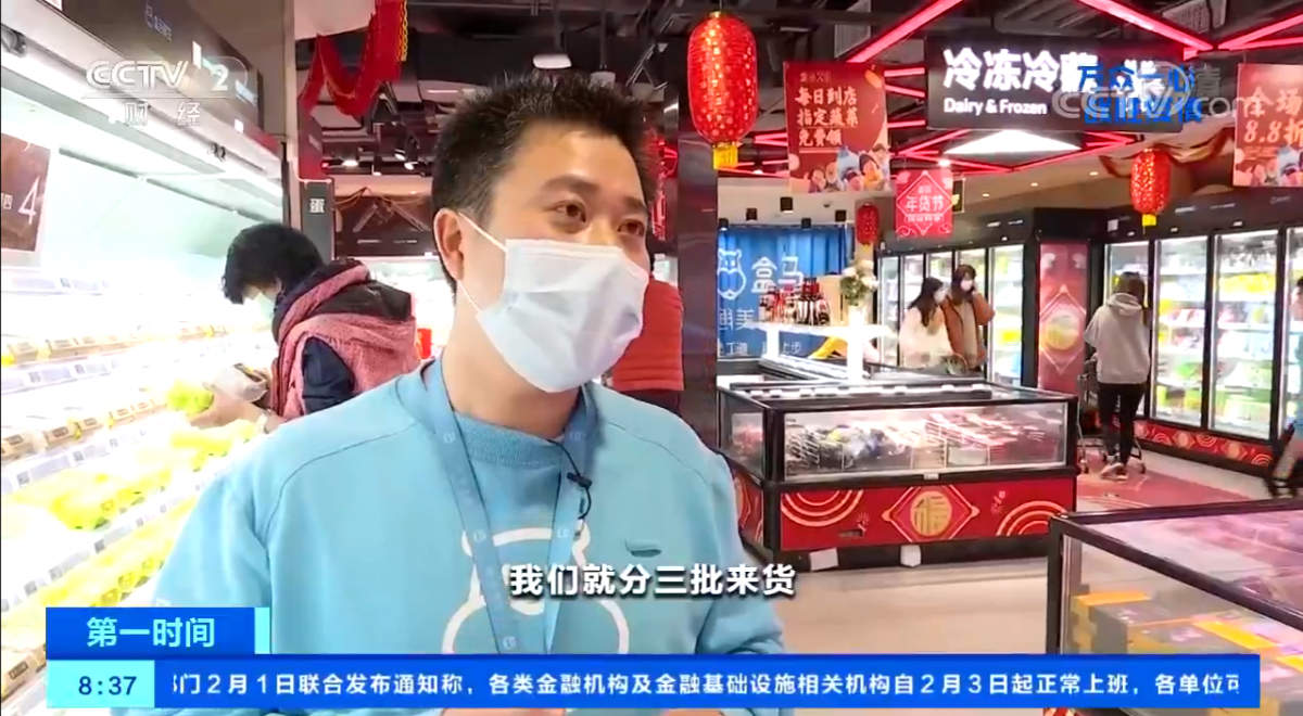 在政府持續(xù)保障貨源供應(yīng)的背景下,鐘天平所在的超市加大了批發(fā)市場進(jìn)貨的頻次,到了初六,供應(yīng)狀況已經(jīng)恢復(fù)正常。“像蔬菜的銷量是平常十倍左右,分三批來貨,我們每天要補(bǔ)充三次貨架,早上一次、中午一次、晚上來一次。”