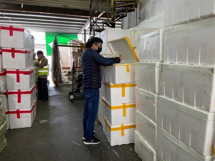 市場的檔主、物流車司機、加工工人,全部都帶上口罩,看新聞講跟人講話要保持距離,但忙起來真顧不了那么多,大家都在“搶貨”,這頭跟檔主商量好,那頭貨可能被拉走了?!柏浺阶约旱募庸ぶ行模潘闶悄愕??!币驗榇汗?jié)批發(fā)市場的檔口工人回去一大半了,沒人送貨,緊張的時候,有女同事干脆自己借一輛三輪車,把談好的貨源直接拉走。