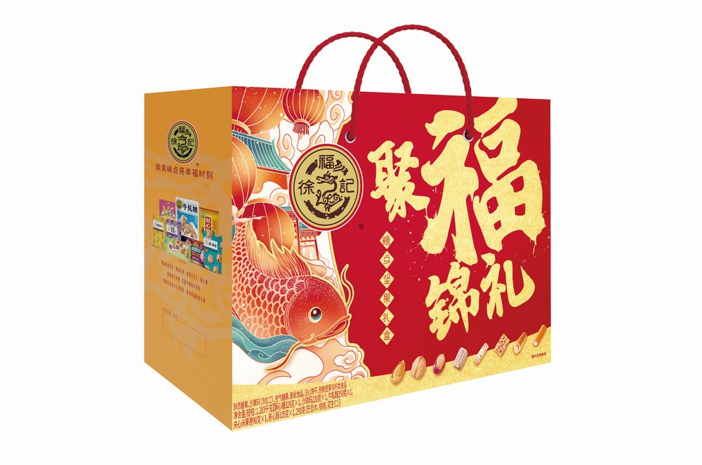 根據(jù)2018-2019天貓堅(jiān)果炒貨細(xì)分品類市場(chǎng)規(guī)模占比及增速數(shù)據(jù)顯示,優(yōu)質(zhì)精選堅(jiān)果消費(fèi)量每年以20%的速度增長 (數(shù)據(jù)來源自 CBND ata第一財(cái)經(jīng)業(yè)數(shù)據(jù)中心)。近幾年堅(jiān)果產(chǎn)品在市場(chǎng)已相對(duì)飽和,單純的堅(jiān)果產(chǎn)品在市場(chǎng)上已屢見不鮮。如何能夠殺出重圍,以獨(dú)特的方式出圈?根據(jù)市場(chǎng)觀察,相比獨(dú)立的堅(jiān)果產(chǎn)品,混搭的多品類禮箱更容易讓消費(fèi)者喜歡,徐福記結(jié)合自身多品類的優(yōu)勢(shì),推出堅(jiān)果混搭的9款綜合禮盒,5種堅(jiān)果產(chǎn)品,包括巴旦木、蟹黃味瓜子仁、蟹黃味蠶豆、原味核桃、紫薯花生,混合搭配徐福記經(jīng)典的糖點(diǎn)零食,并有不同的價(jià)格,可一提滿足全家人的多種食用需求。產(chǎn)品包裝統(tǒng)一用具有吉祥寓意的名稱,聚“福”錦禮,過年好兆頭。