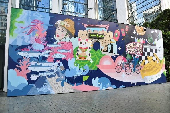 圍擋的室內(nèi)部分采用創(chuàng)新的互動形式,由藝術(shù)家現(xiàn)場親自手繪完成的8幅單元涂鴉畫板組合而成。藝術(shù)家用摩登時(shí)尚的波譜藝術(shù),向當(dāng)?shù)刭e客們奉送出中國傳統(tǒng)的祝福及Shake Shack的活力熱情。