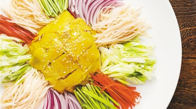 深圳君悅酒店的主席樓一道“風(fēng)生水起撈葵花雞”,不但寓意十足而且鮮味濃郁。