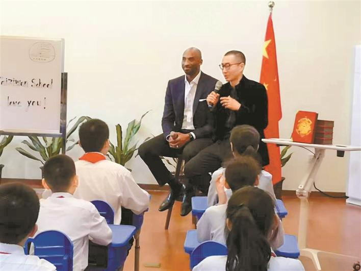 “來了,來了!”隨著人群的騷動,一個高大的身影閃了進(jìn)來,科比手捧一束鮮花來到了課堂??票鹊牡絹?,讓大家正襟危坐,聽從偶像的人生教誨。