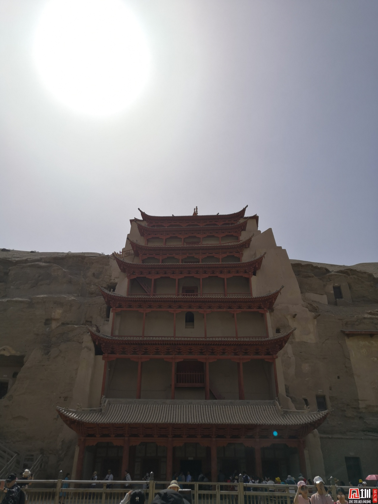 莫高窟是敦煌的代表,是駝鈴悠揚(yáng)的漫長絲路的縮影。我不知道該怎樣去寫神秘的莫高窟。我不想繪聲繪色地描寫幽暗清冷的洞窟里,沒有講解員的手電筒根本看不清的雕塑。他們的神情舉止,他們的衣著色彩,無論是在藝術(shù)還是宗教與歷史上都是耐人尋味的,從非專業(yè)的角度解讀是不負(fù)責(zé)任的。所以以下是部分回憶講解員的介紹,部分出自自己對莫高窟的了解。