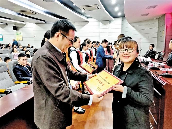 區(qū)民政局負(fù)責(zé)人為獲獎(jiǎng)單位頒獎(jiǎng)。