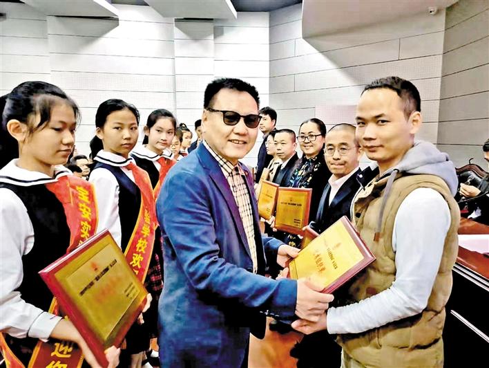 區(qū)慈善會負(fù)責(zé)人為獲獎(jiǎng)單位頒獎(jiǎng)。