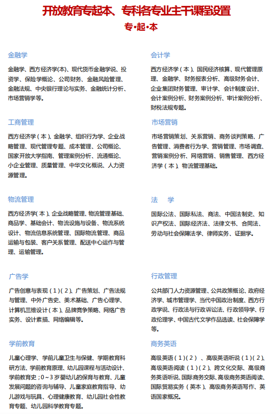 專科起點本科專業(yè):具有國民教育系列相同或相近專業(yè)高等??疲ê瑢?疲┮陨蠈W(xué)歷者。