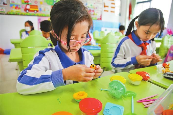 羅湖教科院附屬學(xué)校二年級同學(xué)正在上黏土課。 本版圖片除署名外均由深圳晚報記者 陳玉 劉夏藍(lán) 攝