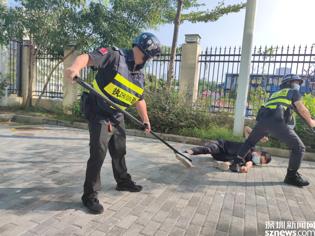 反恐防暴實(shí)踐演練中保安“制服”一名男子
