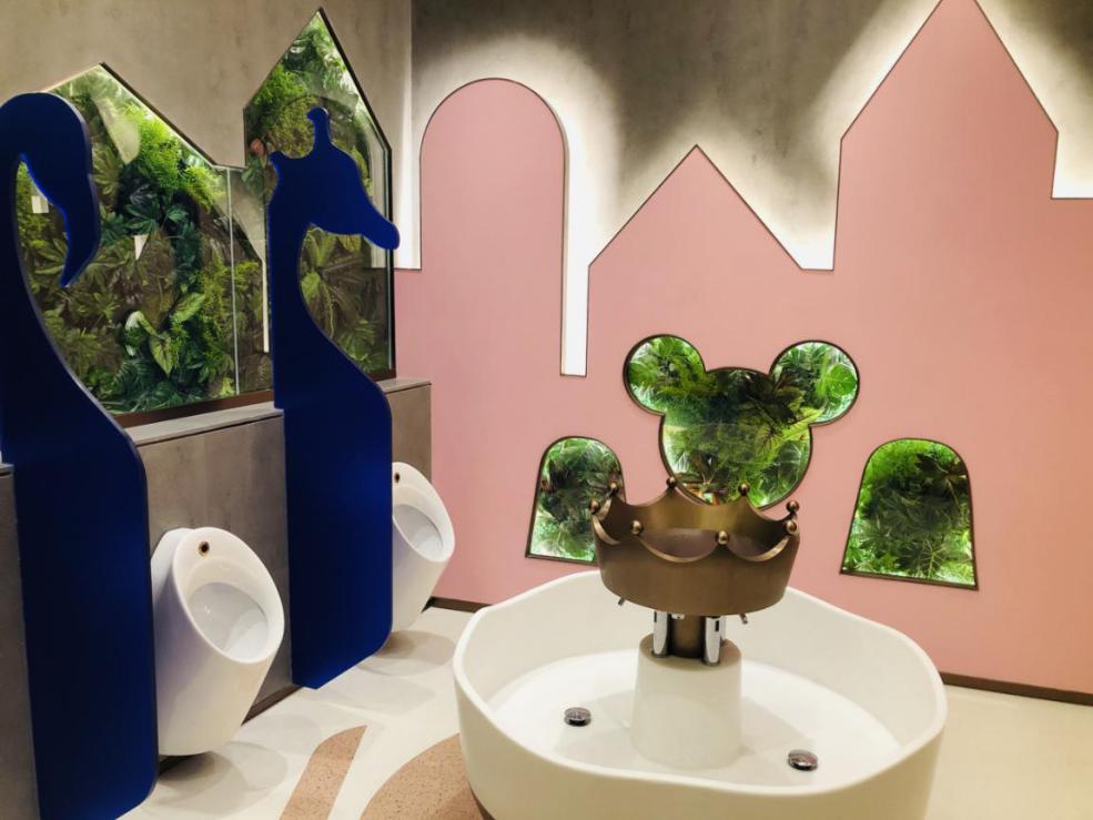 水中庭海之心 LED互動(dòng)地幕秀,隨時(shí)與深海精靈上演親密接觸,內(nèi)設(shè)跨層螺旋星語滑梯,讓人們回歸童年的冒險(xiǎn)世界;木中庭,“凈化”城市呼吸系統(tǒng)的鮮氧氣泡,向下“生長”的繁茂大樹,如同漫游在森意盎然的自然幻境;花中庭,澆灌“蒲公英”主題跨層挑臺(tái),生長出城市里的秘密花園。同時(shí),打造玻璃之森、室內(nèi)養(yǎng)魚池兩大自然微景觀,將生態(tài)之靈氣納入方寸之間。