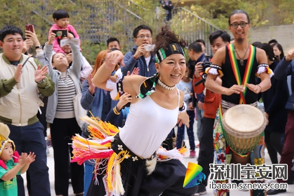 “冬添集市”分為六大板塊,包含:“添趣”“添織”“添耕”“添音”“添物”“添食”,其中最熱鬧的就要數(shù)主舞臺區(qū)的“添音”展區(qū),JAMMALA樂隊和非錄音樂俱樂部連續(xù)兩日,準點帶來音樂表演。JAMMALA樂隊是由一群來自世界各地鼓友們成立的一支非洲傳統(tǒng)打擊樂隊,10日下午3:30,熱情洋溢的鼓聲在泰華梧桐島響起,伴隨著歡快的舞蹈,不少參觀市民加入到游街表演的隊伍中來,禁不住一起跳起來,唱起來,現(xiàn)場活動氣氛熱烈。