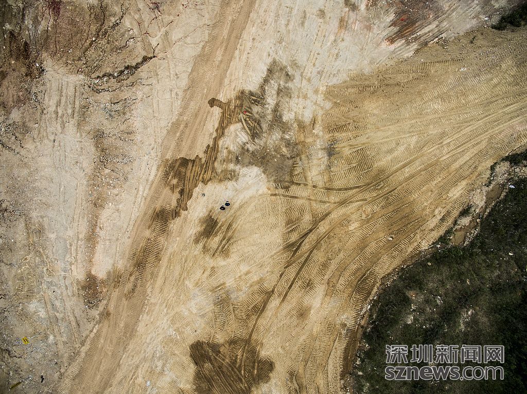 ?記者站在渣土場(chǎng)的坡頂看到,數(shù)十層樓高的渣土堆很是壯觀,一眼望不到邊。而地面行車(chē)的痕跡清晰可見(jiàn),不經(jīng)意間還可以看到一些土坡上的裂紋。據(jù)保安介紹,裂紋是因下雨所致。