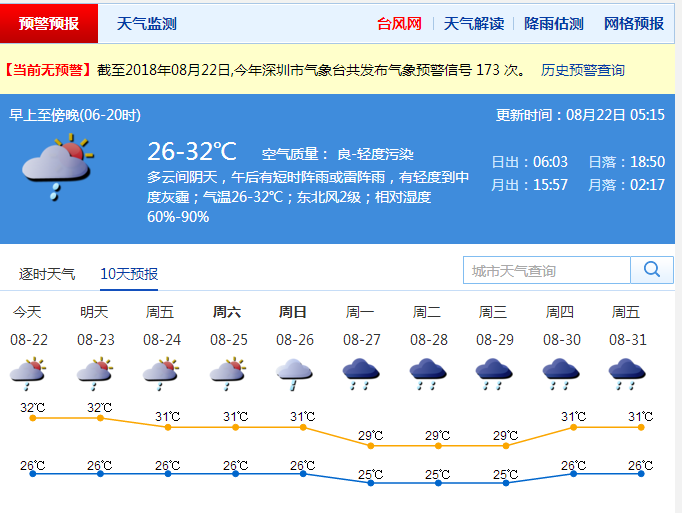 市區(qū)內(nèi)維持2級的平均風力,沿海地區(qū)平均風力3-4級,最大陣風將達到5-6級。最小相對濕度為60%,最大濕度90%。天氣潮濕悶熱,市民應注意飲食衛(wèi)生,謹防胃腸道疾病。
