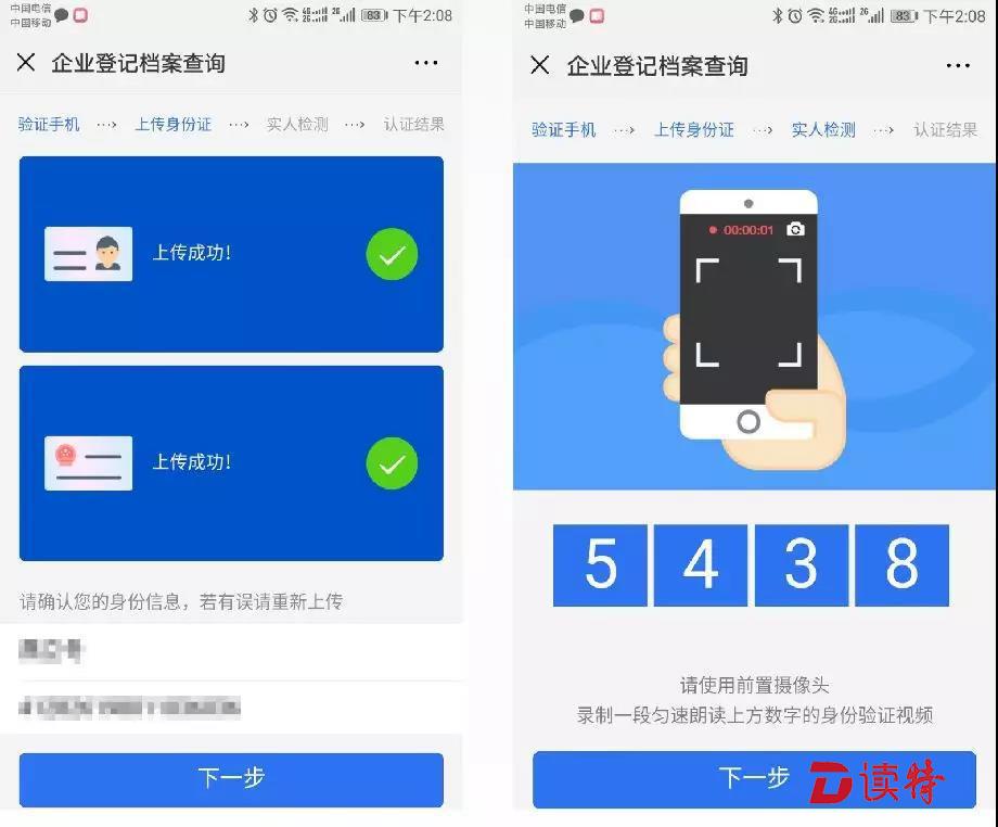 用手機相機拍下身份證的正面和反面,并將圖片按“人像面”、“國徽面”的要求上傳;