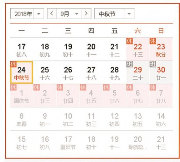 ▲中秋國慶放假安排。